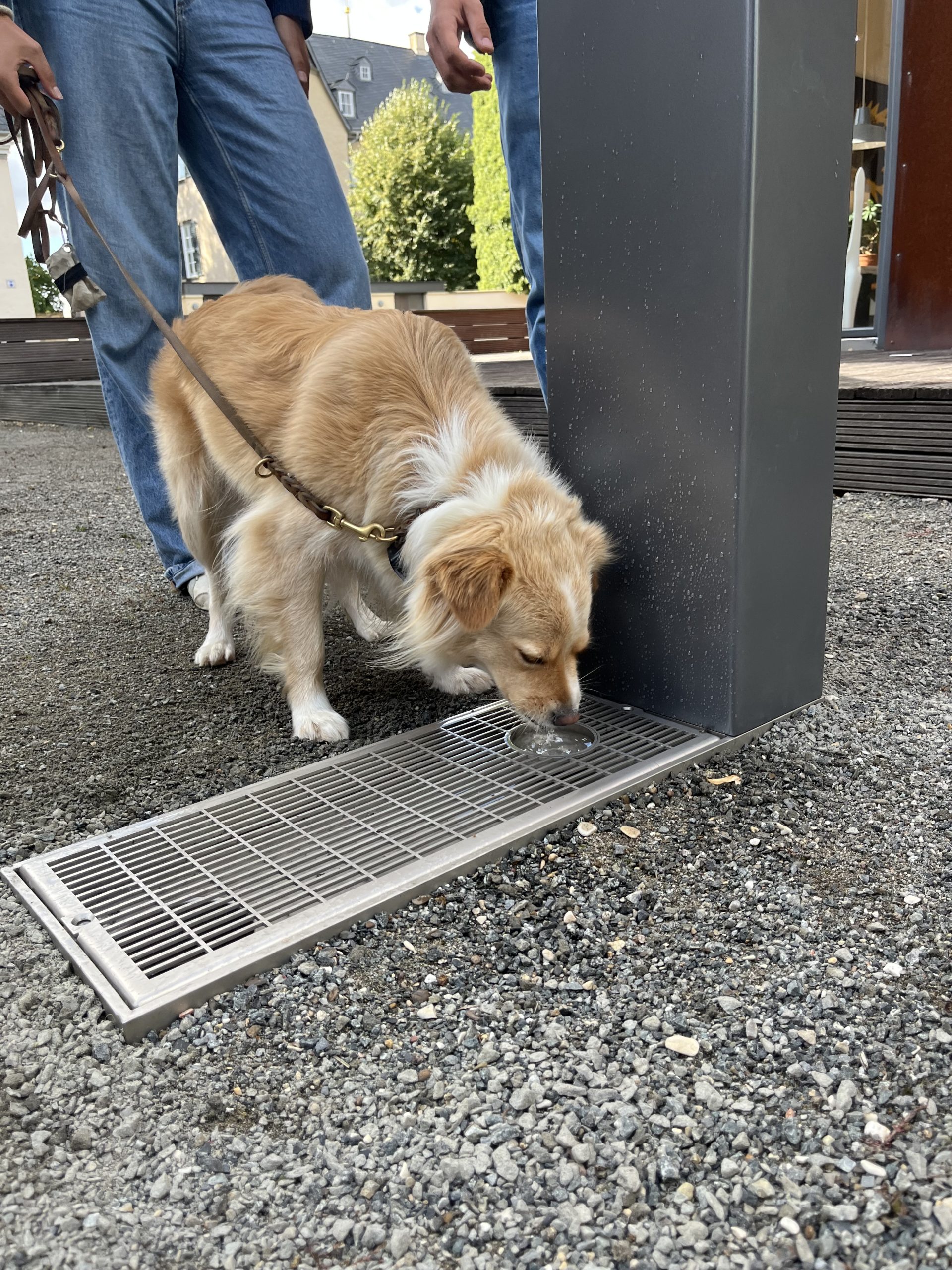 Der Trinkwasserbrunnen wird inkl. einem Grundrahmen, Ablauf DN 100 und Gitterroste geliefert.